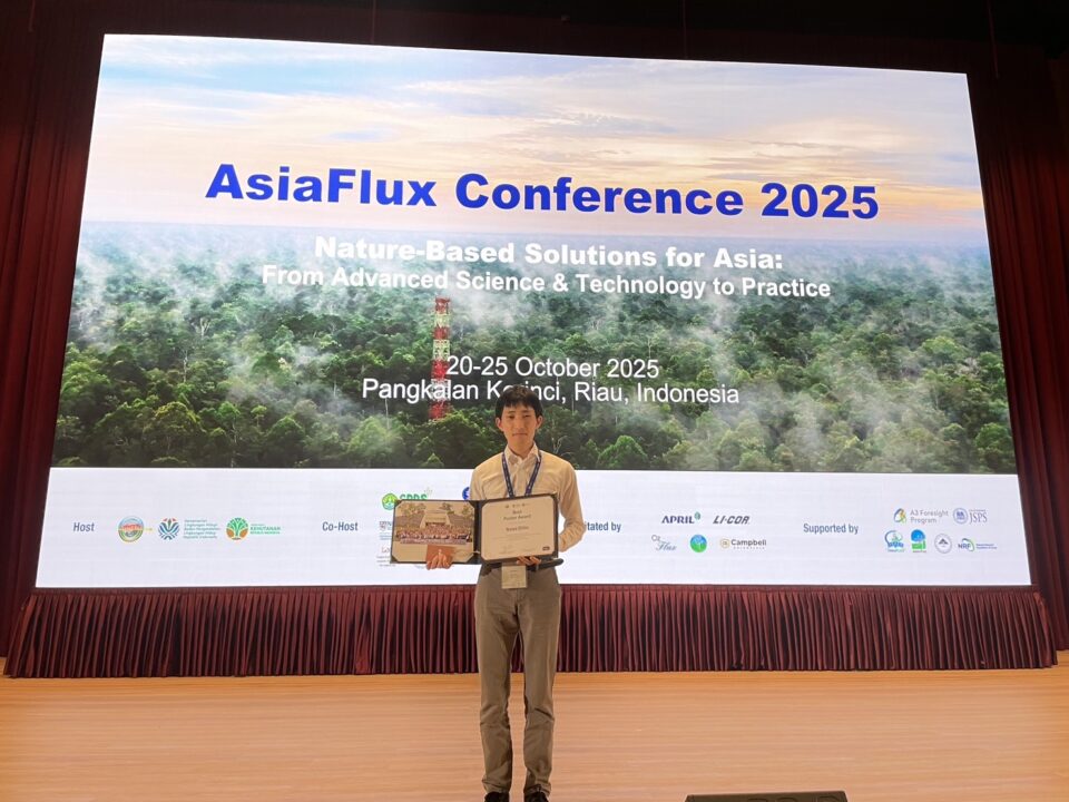 農学院環境フロンティアコース修士課程1年の大津直也さん(生態環境物理学研究室)がAsiaFlux Conference 2025にてベストポスター賞を受賞