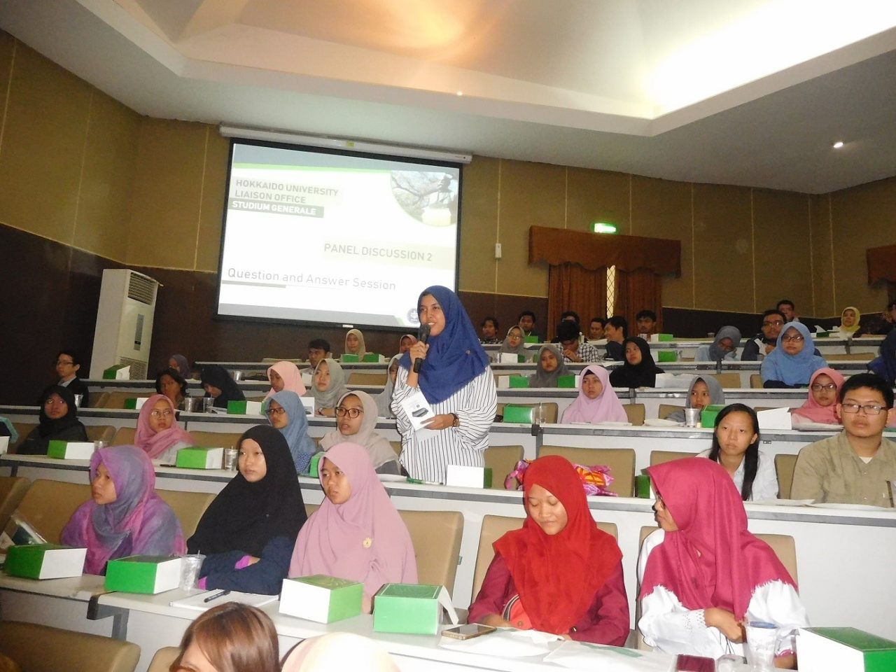 23日の午後は、本学とボゴール農業大学とのダブルディグリープログラムの署名式が行われ、その後、本学とインドネシアの交流、本学とインドネシアの連携に関する機会と挑戦及び本学とボゴール農業大学の国際活動の3つのテーマでパネルディスカッションが行われました。パネルディスカッションには、ボゴール農業大学を中心に学生や教職員250名以上が参加する盛況な会となり、学生から多くの質問が寄せられるなど活発に交流が行われました。